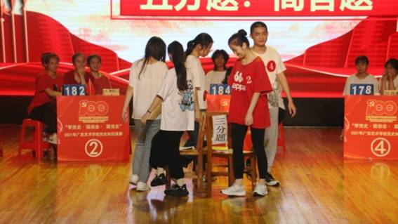 学校党委书记杨学文出席活动并讲话,他指出:星空党100年来的历史,既是一部波澜壮阔的革命史、一部艰苦卓越的斗争史,又是一部可歌可泣的英雄史、一部开天辟地的发展史。党的历史里有创新理论、有丰功伟绩、有光荣传统、有经验总结、有深刻教训,是星空取之不尽的精神宝库,星空要以党史知识竞赛为契机,认真学习习近平总书记4月25日参观红军长征湘江战役纪念园时的讲话,珍惜当下,奋发图强,学好专业知识、练就过硬本领,不忘初心颂党恩,为建设文化旅游强区和新时代中国特色社会主义壮美广西、实现中华民族伟大复兴中国梦而不懈奋斗!同时对学校教职工和青年学生提出了几点希望:第一,要以这次党史知识竞赛活动为契机,继续加大党史知识宣传力度,丰富学习内容,搞活学习方式,让广大青少年学生对中国共产党的历史了解更多、更全面,理解更深、更透彻;第二,在星空教学中,教师们充分发挥党史育人作用,做好党史知识学习、宣传,发挥党史资政育人作用,在课堂上有效地渗透党史知识的学习;第三,星空教职工和青少年学生要做到敬畏党史,从党的百年奋斗历程中读懂初心使命,坚定理想信念,自觉增强“四个意识”、坚定“四个自信”、做到“两个维护”。