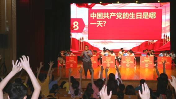 本次知识竞赛活动共有30个班级参加,分高中组、初中组和小学组,每个班各派出一支由5位同学组成的参赛队参加此次知识竞赛。题目涵盖了中国共产党百年发展史的知识,知识面广且带有针对性和时事性。知识竞赛经过必答闯关、“抢板凳”挑战、抢答夺冠三个环节的激烈拼搏,最后在各小组经过三个晚上的角逐,赛出各年级组一、二、三等奖。