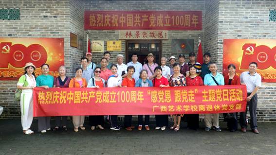 6月27日上午,学校23名离退休党员在学校党委书记杨学文及离退休党支部书记张淑梅带队下来到南宁市革命老区缸瓦窑村中国红军第七军第八军纪念广场,参观了烈士林景云故居,聆听了林景云后代讲述林景云为人民解放事业勇于牺牲的感人事迹。重温红色记忆,重温入党誓词,参加活动的每位党员都感受到了革命烈士赤胆忠心、铮铮铁骨的浩然正气,现场对每位党员都是一次心灵的震撼与洗涤……