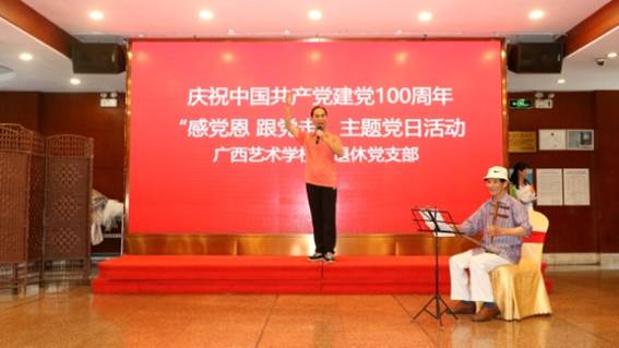 在随后的活动中,全体离退休党员来到新华大酒店通过合唱《没有共产党就没有新中国》、歌伴舞《太阳最红毛主席最亲》、毛主席诗词朗诵、京剧演唱等,其中还穿插进行建党100周年知识问答,活动内容丰富多彩,离退休党员很开心,也很感动。
