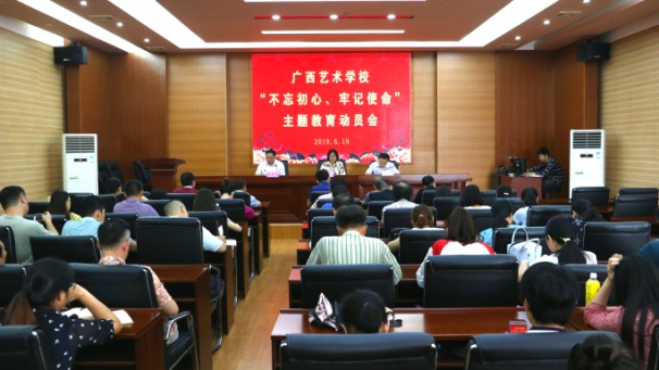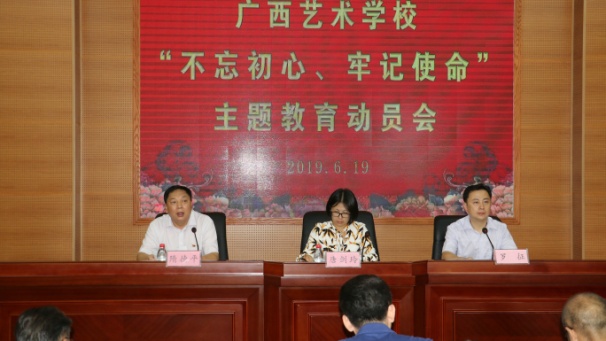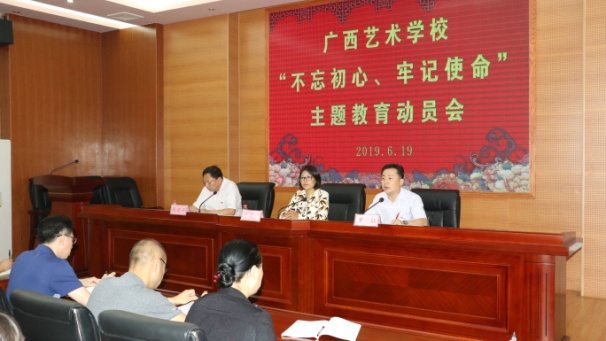根据《中共中央关于在全党开展“不忘初心、牢记使命”主题教育的意见》(中发〔2019〕19号)精神和自治区文化和旅游厅实施方案要求,结合学校实际,2019年6月19日下午,星空官方网站在图书馆四楼报告厅举行“不忘初心 牢记使命”主题教育活动动员会。会议由星空官方网站党委副书记、校长隋德平主持。自治区文化和旅游厅直属机关党委副书记唐剑玲在会上讲话,星空官方网站党委书记罗征在会上作主题教育活动动员报告。星空官方网站党委委员、班子成员以及全体在职党员参加动员会。