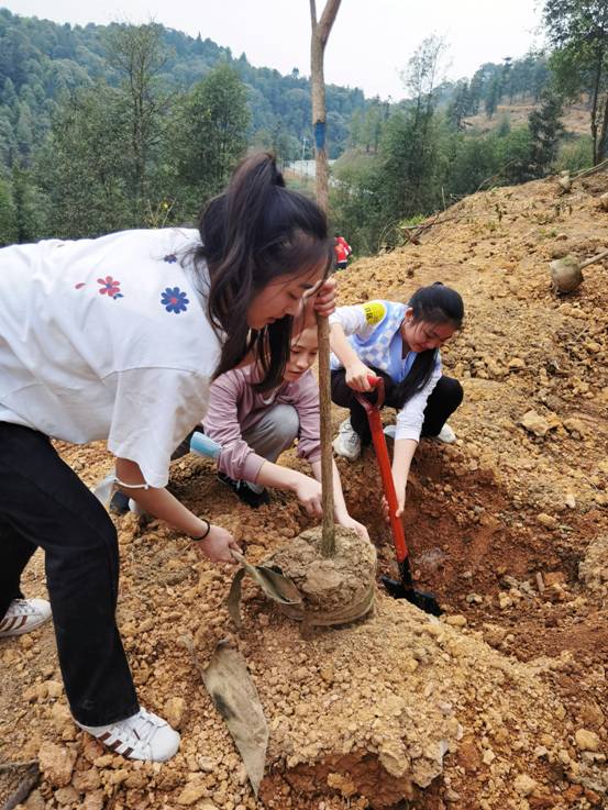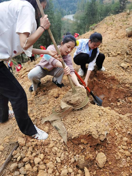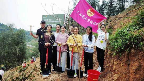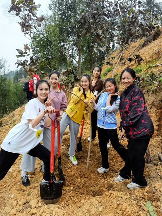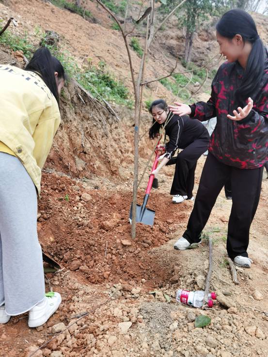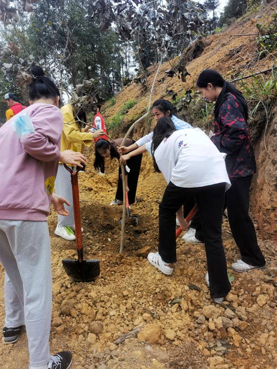 我校团委师生们与广西各族各界青年代表一起挖坑、扶苗、培土、浇水,种下一棵棵树苗,种下绿色希望,在广泛参与的国土绿化美化行动中,共同承担起保护好广西山山水水的历史责任。