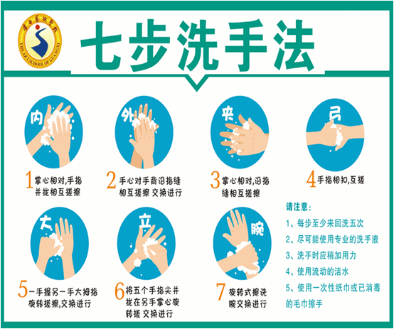 3.勤洗手。按照六步洗手法。饭前、便后、接触呼吸道分泌物后应立即洗手。