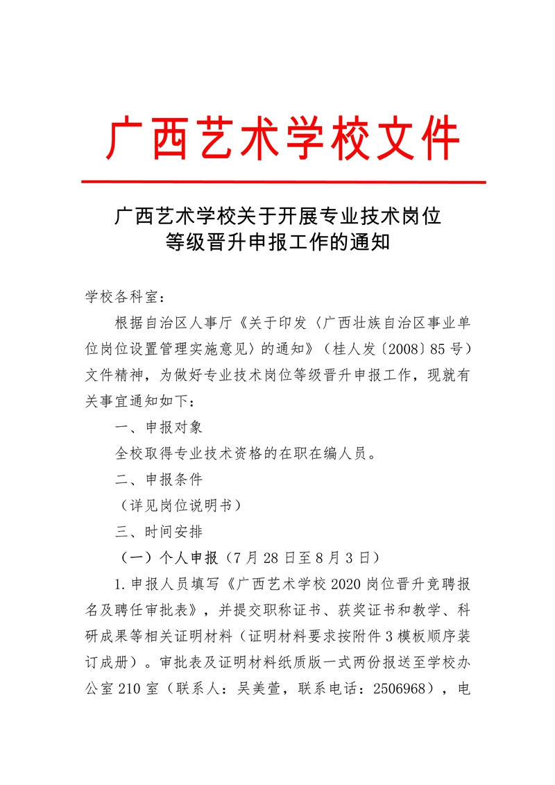 星空官方网站关于开展专业技术岗位等级晋升申报工作的通知 时间:2020-07-28 18:20:02 来源:星空官方网站 作者:星空官方网站 浏览:次 分享到: 星空官方网站关于开展专业技术岗位等级晋升申报工作的通知.doc附件1:岗位晋升报名及聘任审批表.xlsx 点赞 收藏 打印正文 关闭本页