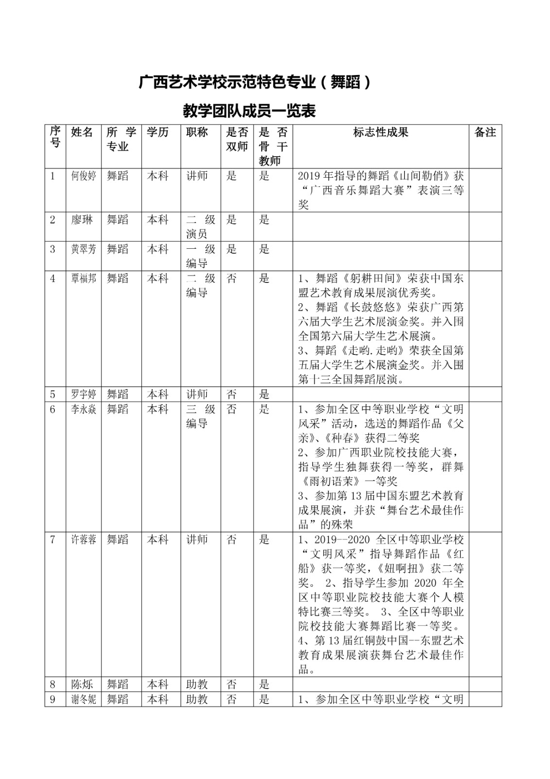 8 星空官方网站示范特色专业教学团队成员一览表