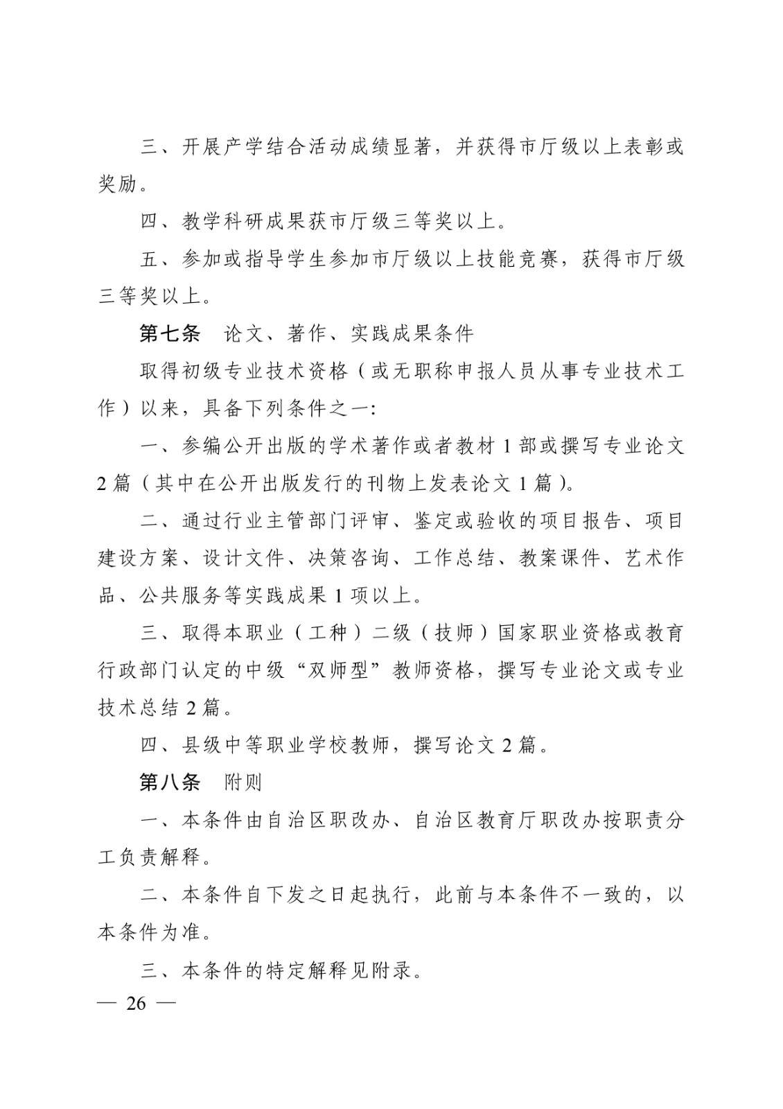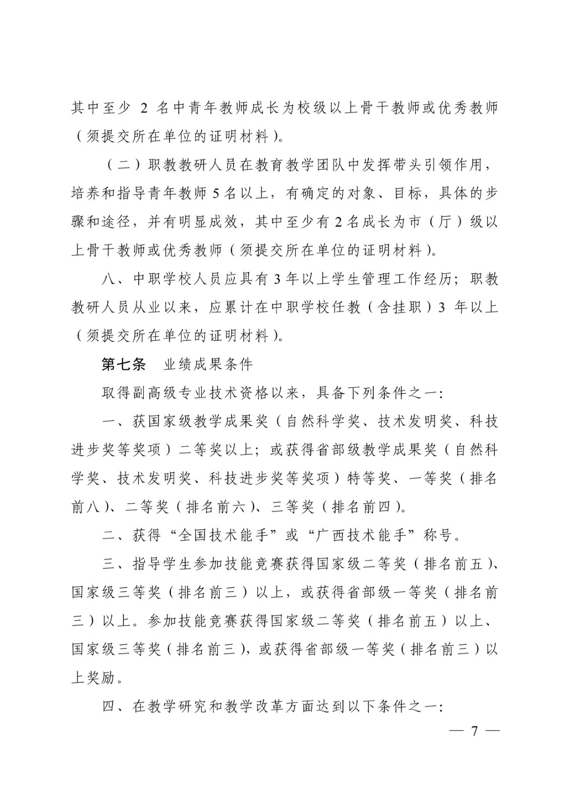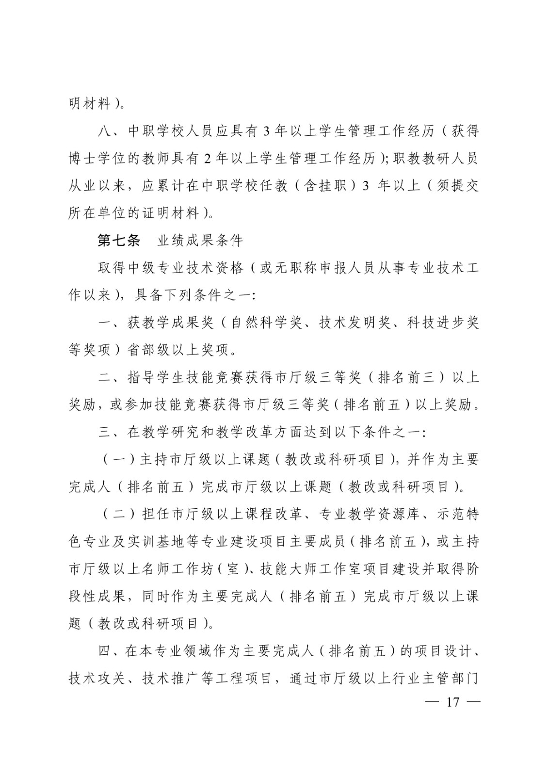 (桂教职改〔2018〕36号)转发关于印发广西壮族自治区中等职业学校教师系列高、中、初级专业技术资格评审条件(试行)的通知 时间:2020-09-17 18:49:44 来源:星空官方网站 浏览:次 分享到: 点赞 收藏 打印正文 关闭本页