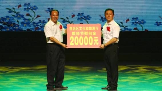 自治区文化和旅游厅副厅长赖富强代表自治区文化和旅游厅向学校赠送教师节慰问金