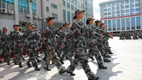 “立正!”“稍息!”“报数!”“向前看!”“向左转!”“向右转!”“向后转!”“齐步走!”“跑步走!”“正步走!”……每一声口令后,新生们干脆利落,动作整齐划一。他们从依赖到独立,从稚嫩到成熟,从柔弱到坚强,从参差不齐到整齐划一,实现了真正的自我蜕变。他们英姿飒爽。那昂首挺拔的英姿,彰显了他们乐观自信的精神。
