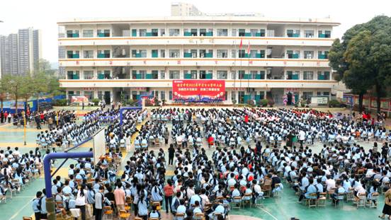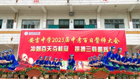 为加强校际交流,加大学校招生和办学成效宣传力度,3月15日下午,我校广西刘三姐青年艺术团26名师生来到南宁市安吉中学中考百日誓师大会现场,为该校师生们送上了精心准备的民族舞蹈《节节高》。