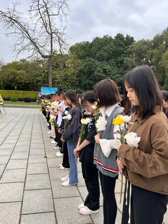 随后,师生们怀着对英烈的崇高敬意,走到雕像前,逐一鞠躬致意,将手中的菊花敬献给革命先烈,寄托对他们的崇敬和向往。