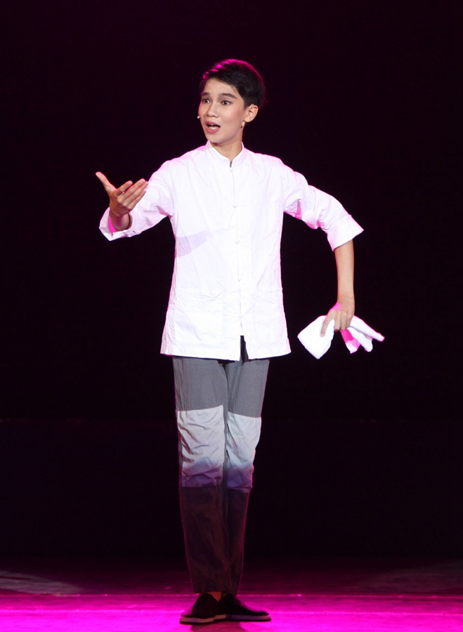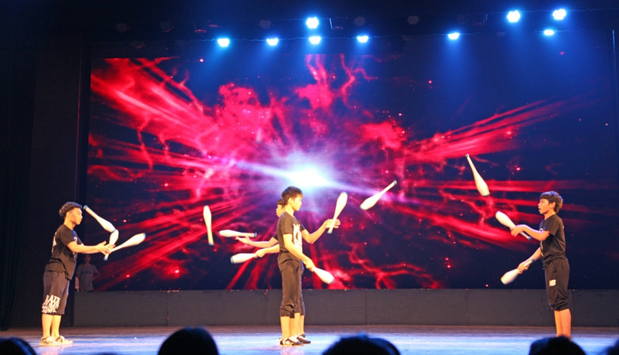 晚会在合唱《藤缠树》、《兰娄信尼入》歌声中拉开帷幕,在钢琴的伴奏下,两首婉约、动情的民歌赢得欢呼声一片。唢呐独奏《百鸟朝凤》,清脆、悦耳、婉转,感情充沛淋漓。男声独唱《我为祖国献石油》,浑厚、饱满,洪亮,唱出了一代代石油工人的奉献精神。杂技《蹬人小顶》,惊险、刺激、绚丽,其中的人墙转动更是展现了杂技的神奇魅力。朗诵《疯娘》,句句含情,浓烈真挚、让人听了不禁为之感动。国标舞《重生》,绚丽耀眼、动感十足、魅力无限,引发全场尖叫声。粤剧《沙家浜》选段,演员虽年轻,演唱和表演技巧却很老练。杂技《手技》,炫目、华丽、迷人。女声独唱《娘,莫说歉》,在高低起伏的歌声里倾诉衷肠,新生们更是高呼演唱老师的名字表达钦佩之情。舞蹈《绣球女》,演绎了少数民族女子对定情物——绣球的挚爱和膜拜。