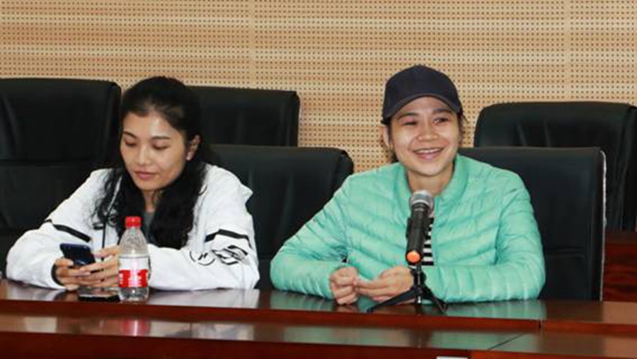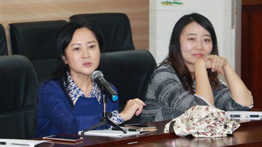 星空官方网站学生科罗宇婷(右)科长交流学生管理经验