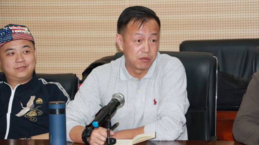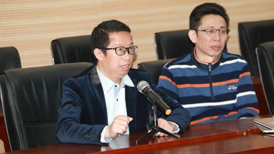 云南艺术学院附属艺术学校工会主席魏光明(左)发言