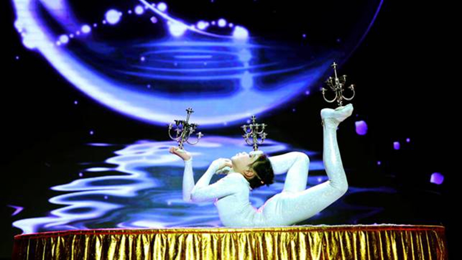 杂技《柔术滚灯—银星璀璨》表演者:2014级杂技二班黎小莹