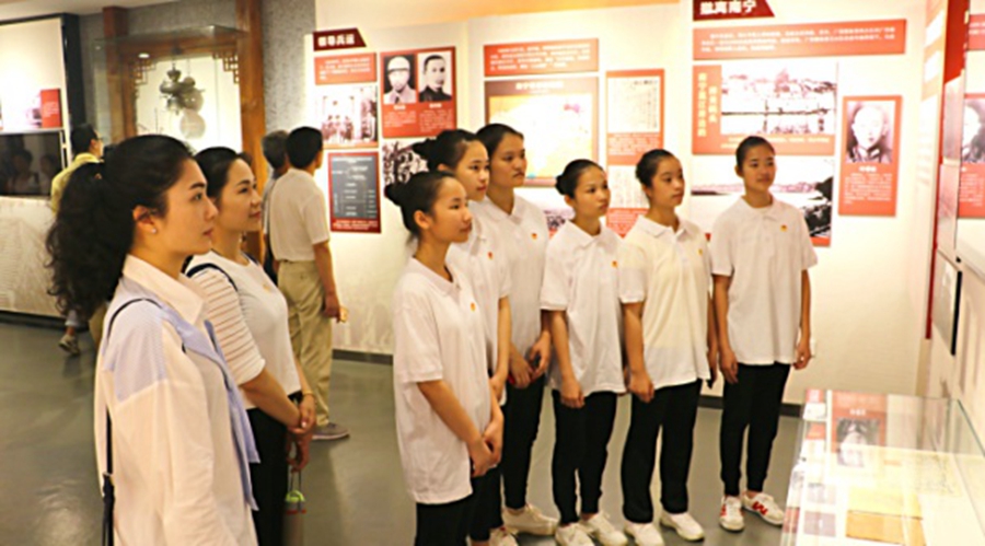 参观“李明瑞、韦拔群百色起义陈列馆” 老师与共青团员合影
