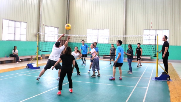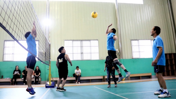 教职工趣味运动会共分为趣味竞技、体育竞赛和棋牌竞赛三个板块,共11个比赛项目。在工会文体委员唐良的主持下进行,把教职工们分成5个组,进行了乒乓球、跳绳、党史知识竞答、校史知识竞答、气排球、羽毛球、棋牌等比赛。