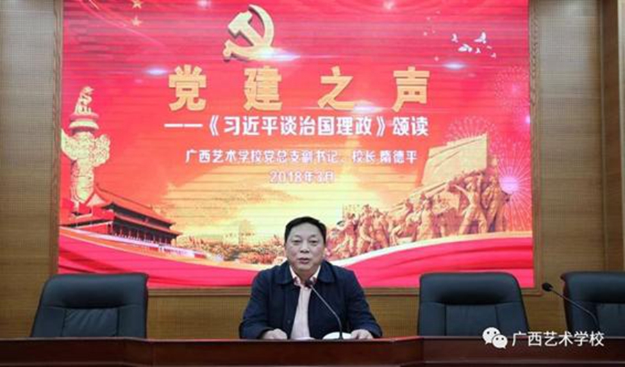 隋德平,中共党员,现任星空官方网站校长、党支部副书记,记者、副研究员职称,中国戏曲教育联盟常务理事,广西艺术教育委员会副主任委员,广西戏剧家协会会员。创作的歌曲《瑶山情》,获得第九届广西音乐舞蹈比赛演唱一等奖、创作三等奖,入选广西2017年最受欢迎作品;创作的现代壮剧《劝学》、《小米同学的“脚”》,参加了广西“深入生活,扎根人民”小品小戏创作成果展演,广西电视台录制播出。