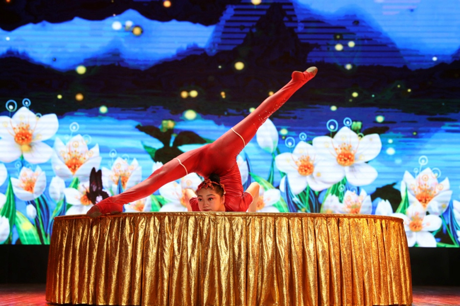 杂技班学生表演单人柔术《霓凰》