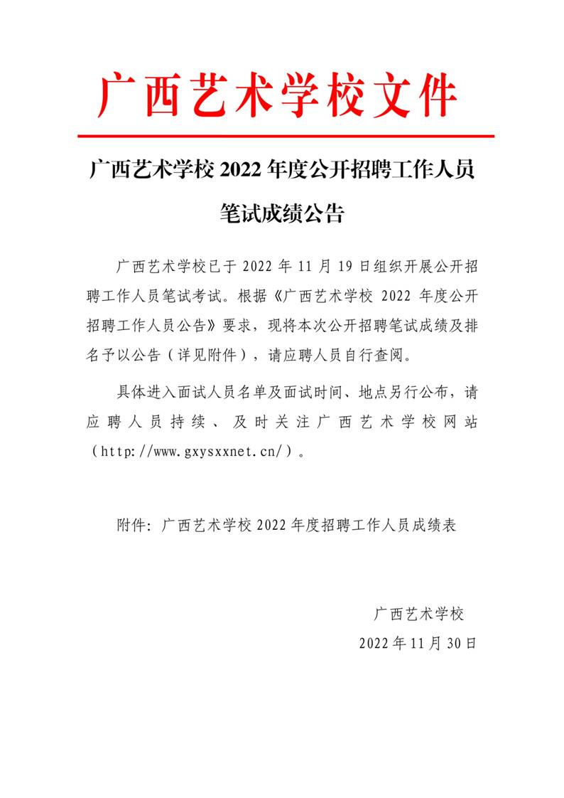 星空官方网站2022年度公开招聘工作人员笔试成绩公告