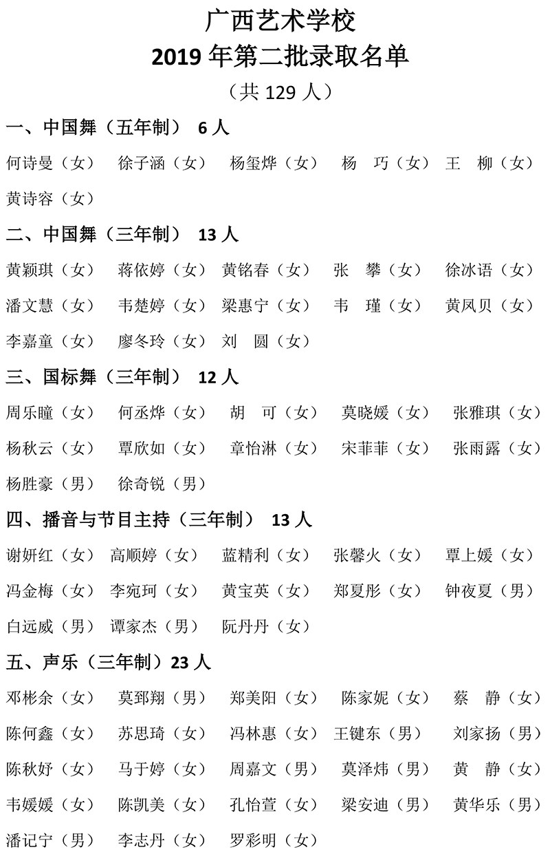 星空官方网站2019年第二批录取名单(共129人)