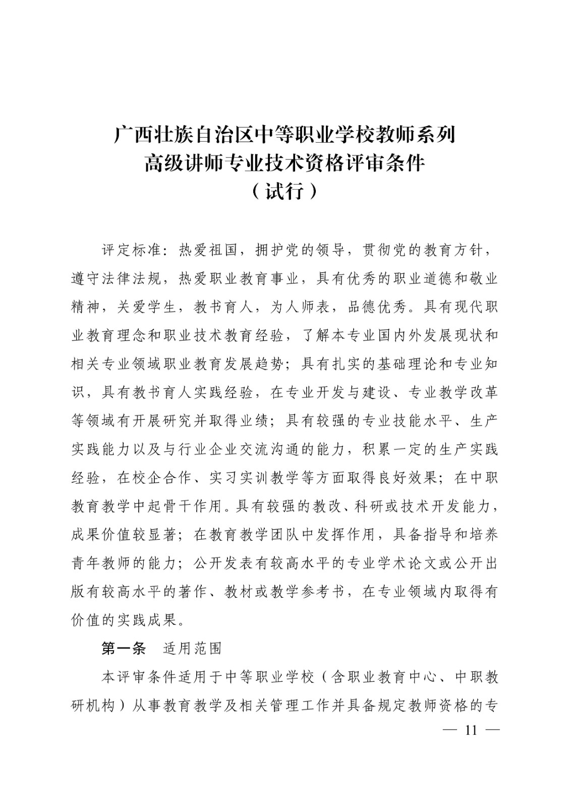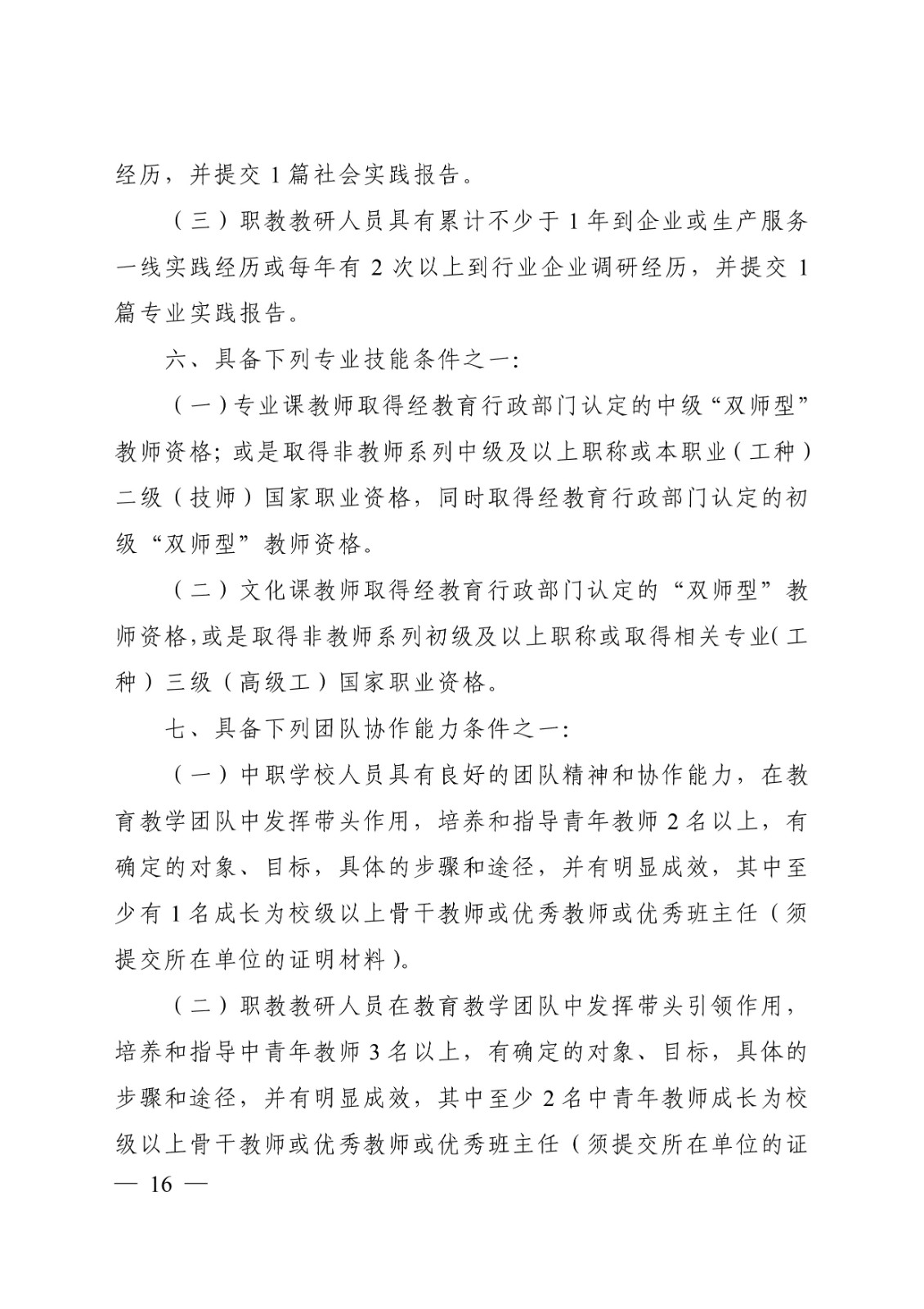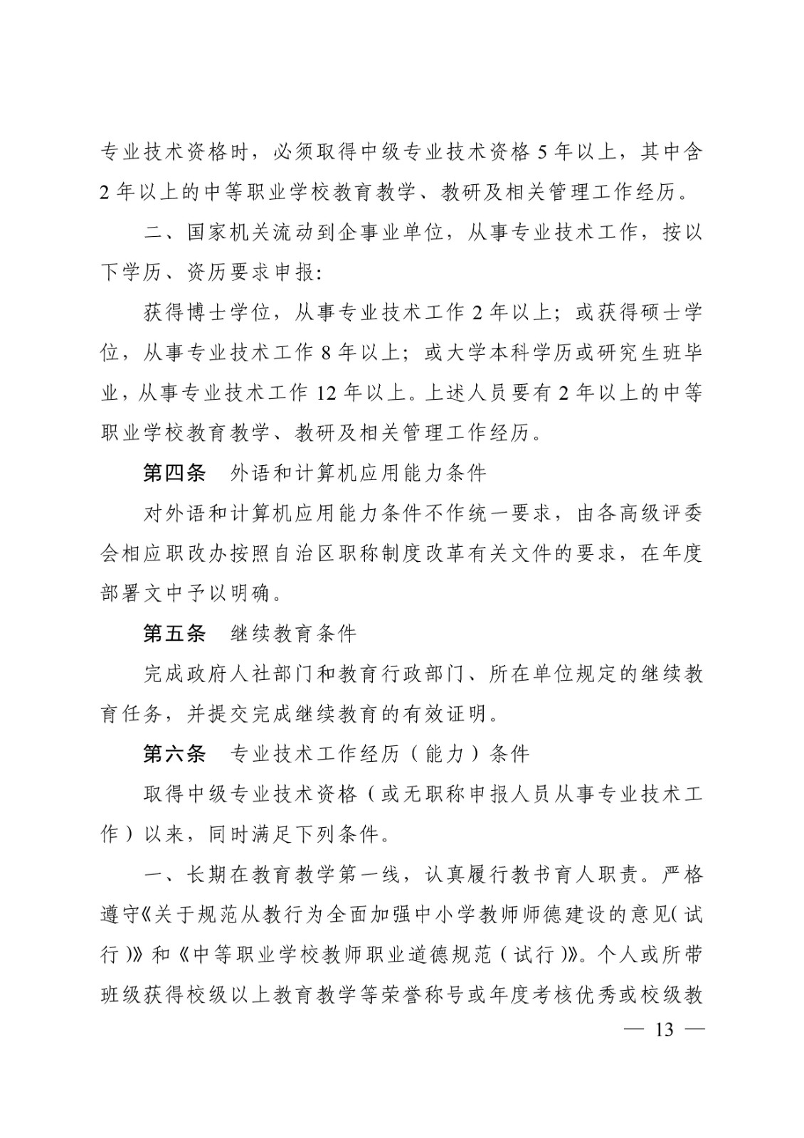 (桂教职改〔2018〕36号)转发关于印发广西壮族自治区中等职业学校教师系列高、中、初级专业技术资格评审条件(试行)的通知 时间:2020-09-17 18:49:44 来源:星空官方网站 浏览:次 分享到: 点赞 收藏 打印正文 关闭本页