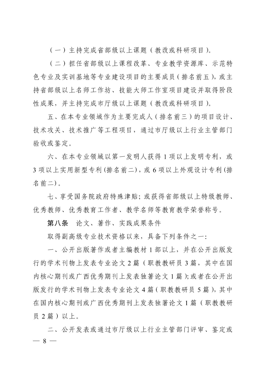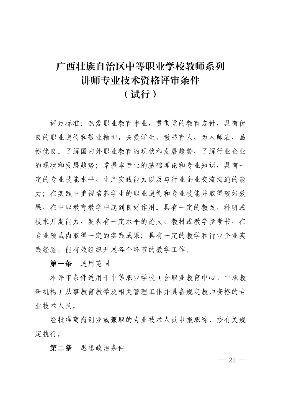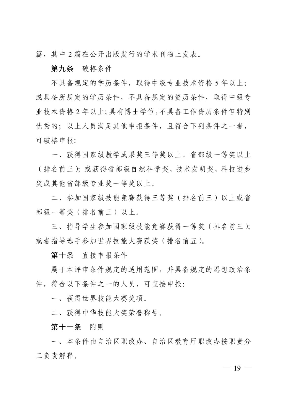 (桂教职改〔2018〕36号)转发关于印发广西壮族自治区中等职业学校教师系列高、中、初级专业技术资格评审条件(试行)的通知 时间:2020-09-17 18:49:44 来源:星空官方网站 浏览:次 分享到: 点赞 收藏 打印正文 关闭本页