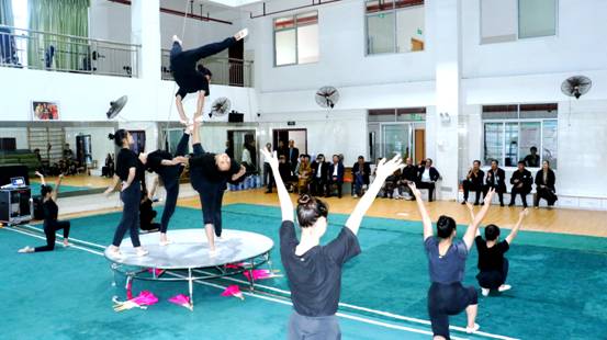 观看杂技教学展示