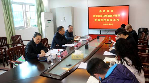 2月28日上午,自治区文化和旅游厅一级巡视员唐正柱到星空官方网站开展调研工作。信息科技教育处处长蒙毓刚、信息科技教育处副处长袁境、校长罗征、校党委书记赵晋凯陪同。唐正柱深入教学一线,认真观看了杂技、舞蹈、戏曲等专业现场课堂教学,随后在满天星办公楼会议室召开会议。会上,罗征介绍了我校的基本情况,汇报学校2021年取得的成绩及2022年将要开展的重点工作,阐明学校的发展思路、办学定位,剖析学校当前存在的主要问题、发展中遇到的困难。与会成员就学校当前发展问题进行了深度交流。