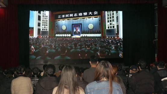 12月6日上午10时,中共中央、全国人大常委会、国务院、全国政协、中央军委在首都北京人民大会堂隆重举行江泽民同志追悼大会,我校组织全体教职员工在舞蹈实训基地集中收听收看,沉痛悼念敬爱的江泽民同志。