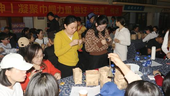 教职工们体验香囊制作、油茶技艺、青团制作等传统文化