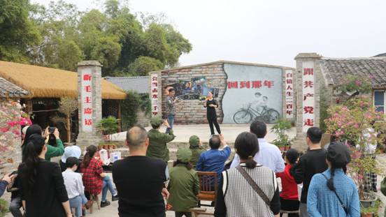 在“回到那年”主题园,教师们欣赏了红色文化沉浸式节目表演,他们被台上演员的气氛感染,也纷纷上台献艺,充分展现了我校教师扎实的舞台艺术功底。副校长杨建伟、王予嘉两位广西文化名家先后即兴表演的彩调剧《刘三姐-戏媒》片段和《三看亲》选段更是把现场气氛推向了高潮,台上台下欢歌笑语不断,其乐融融一片。