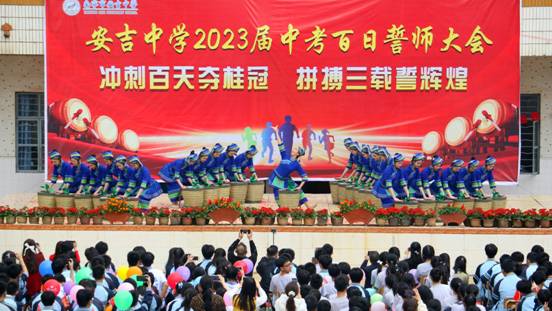 为加强校际交流,加大学校招生和办学成效宣传力度,3月15日下午,我校广西刘三姐青年艺术团26名师生来到南宁市安吉中学中考百日誓师大会现场,为该校师生们送上了精心准备的民族舞蹈《节节高》。