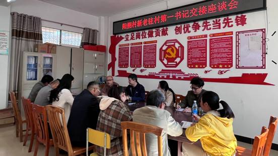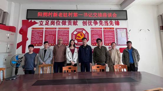 在交接会上,原驻村第一书记潘长青分享了驻村心得体会和工作经验,逐一介绍了村“两委”班子成员。黄姚镇党委副书记,阳朔村包村工作组组长程夏感谢原书记潘长青为阳朔村所做的贡献,对新到任的第一书记表示欢迎,将和新书记一起共谋划,协力共促阳朔村的发展。新选派驻村第一书记黄恕作了表态发言,表示将认真学习乡村振兴的相关政策,迅速转变角色,积极主动投入工作,不辜负党和学校的期望,切实发挥好第一书记的职责和担当,携手村“两委”班子把阳朔村发展的更好。