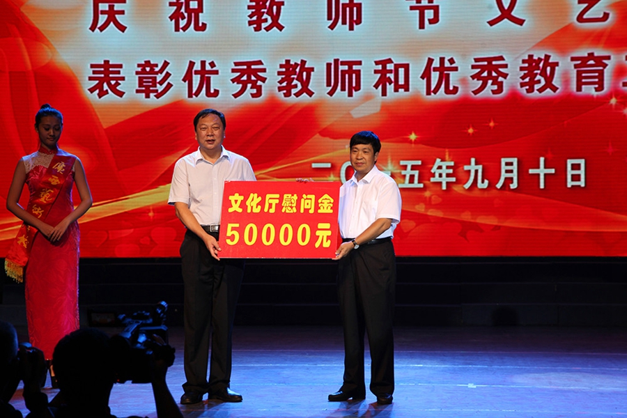 接着,隋校长代表学校向为学校建设给予正确引导并倾注大量心血的文化厅领导表达诚挚的感激,向全体教职员工致以节日的祝贺和亲切的慰问,向为学校建设与发展做出贡献的老领导、离退休老同志致以衷心的感谢和崇高的敬意。他表示,学校要营造浓郁的尊师重教氛围,维护教师的利益,支持教师的成长;教师要争做党和人民的好教师,做有道德情操、有理想信念、有扎实学识、有仁爱之心的好教师;学生要尊敬教师,尊重教师付出的辛勤劳动,记住教师的谆谆教诲。