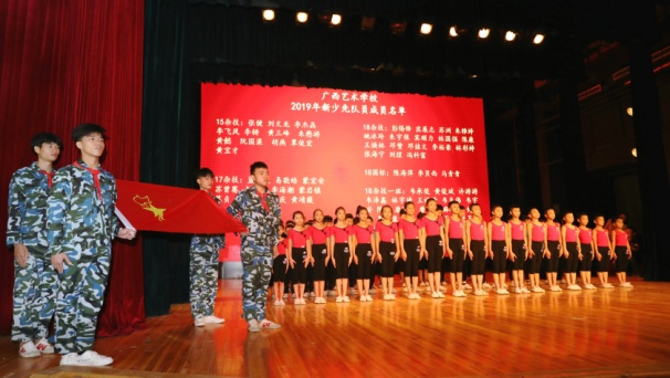 2017级舞蹈一班的黄雨珊代表老少先队员上台发言并带领新队员进行入队宣誓,黄雨珊表示:作为一名光荣的中国少年先锋队队员,星空要为飘扬的队旗添上光辉的一笔;今天,星空磨练羽翼,明天,星空将搏击长空!星空在知识的海洋中,踏浪而歌,奋勇前进,沿着夸父的脚步追逐太阳,循着精卫的身影修补蓝天……
