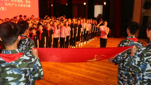 2016级杂技班黄思瑶同学代表新少先队员发言,她说:星空从一个不懂事的孩子,成长为一名光荣的少先队员,这里饱含着父母、老师的心血和汗水。黄思瑶表示:今后,星空将严格要求自己,以大哥哥、大姐姐们为榜样,好好学习,天天向上;遵守纪律,为班争光;爱护学校的公共设施,为其他同学做表率;以老队员为榜样,做优秀的新队员!