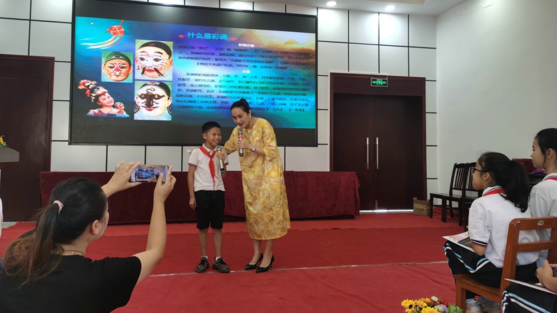 她希望通过这次讲座,能够向下一代普及民族优秀传统文化,让彩调文化真正地走进和融入青少年的生活中去,进一步把广西彩调艺术的品牌打出去,使彩调这一国家级非物质文化遗产永续传承。
