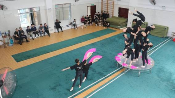 校长罗征引领北京杂技团一行参观了学校基础设施建设,观看了杂技班的训练和汇报节目并介绍了学校的办学情况,就北京杂技团提出的合作办学、品牌创建和演员引进的合作意向给予充分肯定。学校办学需要更好的就业方向,需要更高的平台展示,需要更直接的剧目合作,北京杂技团以品牌优势、集团优势为校企合作提供了更坚实的合作基础。